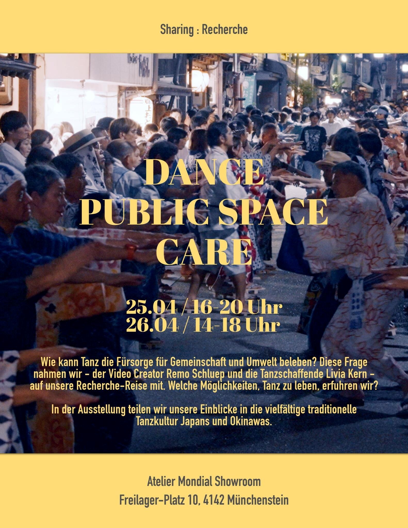 How can dance vitalise care for our communities and the environment? We – video creator Remo Schluep and dance artist Livia Kern – asked ourselves this question during our research journey into the diverse dance traditions of Japan and Okinawa. What possibilities for embodying dance did we discover? How does dance in public spaces nourish the community and cultivate the connection between people and nature? How does it help to withstand political discrimination and colonial exploitation?