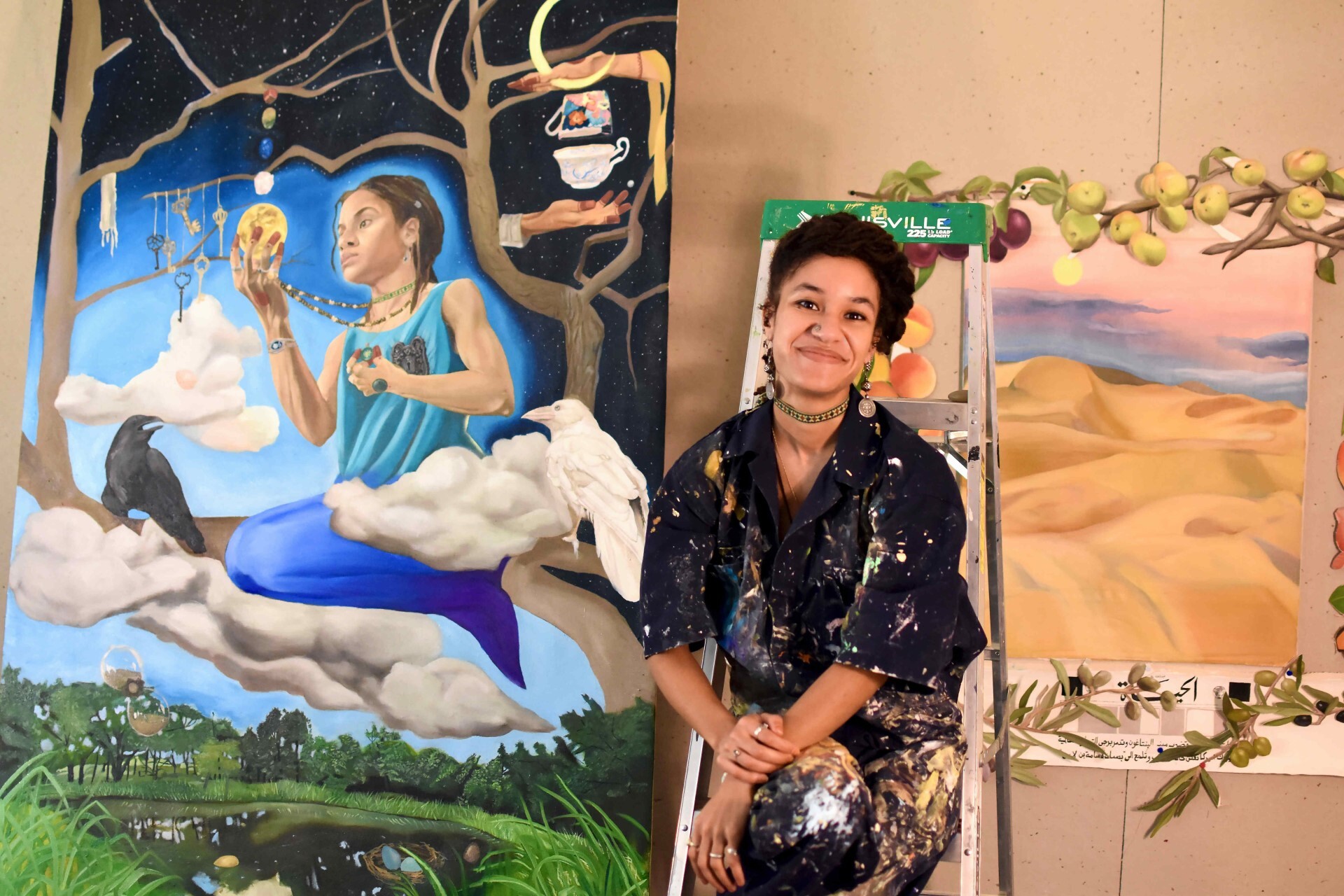 This work is an active and engaged invocation that delves into untold narratives of human emotions, the lives we are born into and then limited by. My pieces explore surreal landscapes of human consciousness. I approach my work with a conceptual sociologist's lens. Through books, I read, study, and archive aspects that educate me on the human condition. I desire to understand my own condition first, and how I fit into the larger systemic structure of an imperial framework. Once I’ve understood what I want to paint, I create mind maps and sketches to describe the information and emotions. Reading’s a core part of my process and practice. Through painting, sculpture, and poetry the pieces in my body of work explore the human capacity for tenderness and vulnerability. Drawing inspiration from tarot cards, runes, and the Quran; I explore how my unique placement within different forms of systemic oppressions, and cultural conditioning affect how I think of the world, and how it taught me to think of myself.